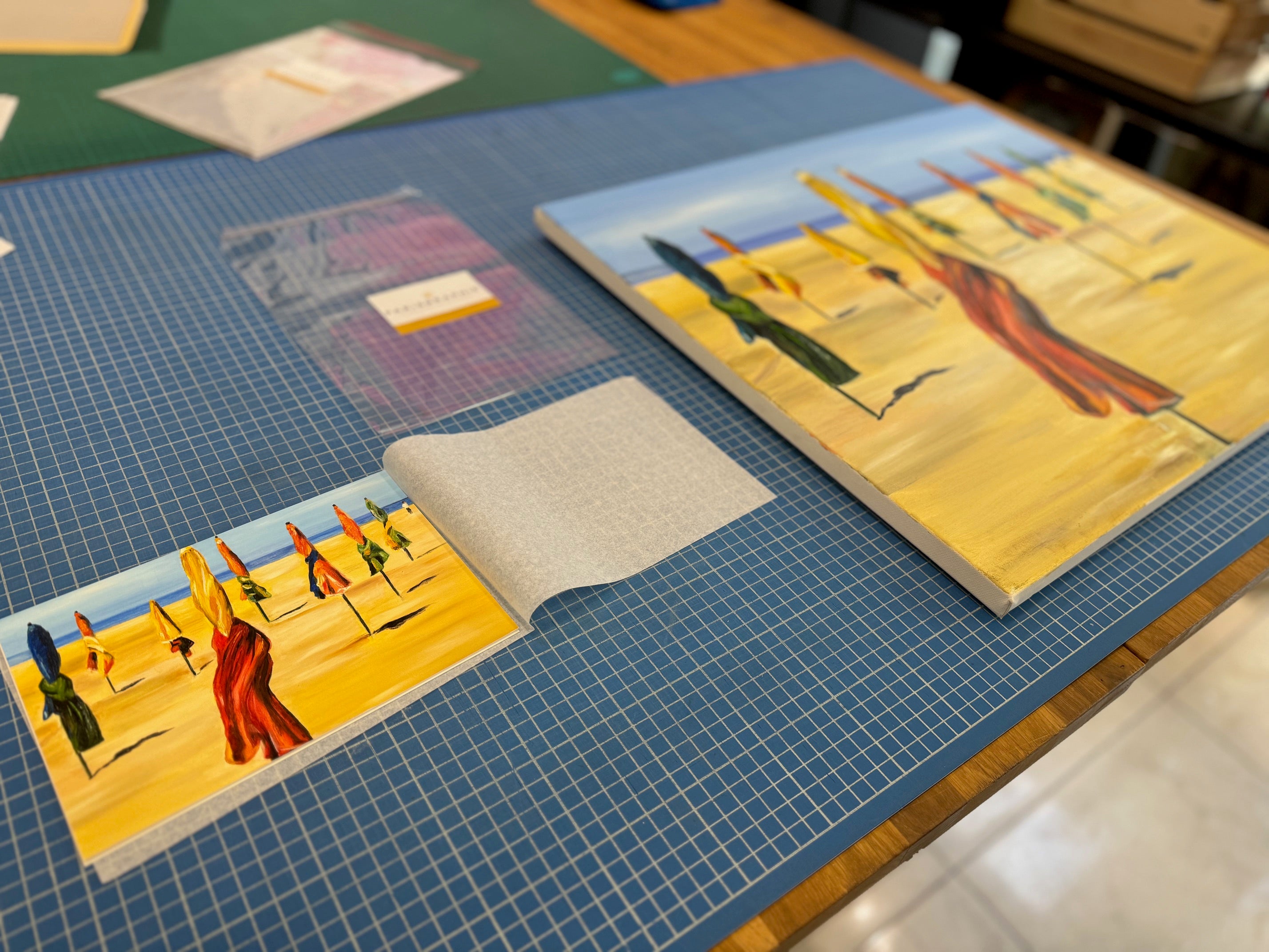 Les reproductions peuvent être fidèles au format de la toile, ou agrandies 2 fois (600 DPI), 3 fois (800 DPI) ou 5 fois (1200 DPi). Cette compétence permet à nous autres artistes de voir nos créations prendre une nouvelle dimension tout en conservant une qualité d'image exceptionnelle.