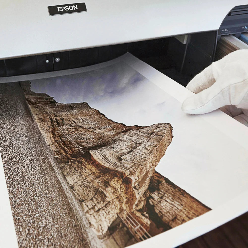 Ce papier Fine Art est un des plus célèbres au monde. Sa texture au grain fin, caractéristique des papiers d'art, confère à chaque image une tridimensionnalité et une intensité impressionnantes.