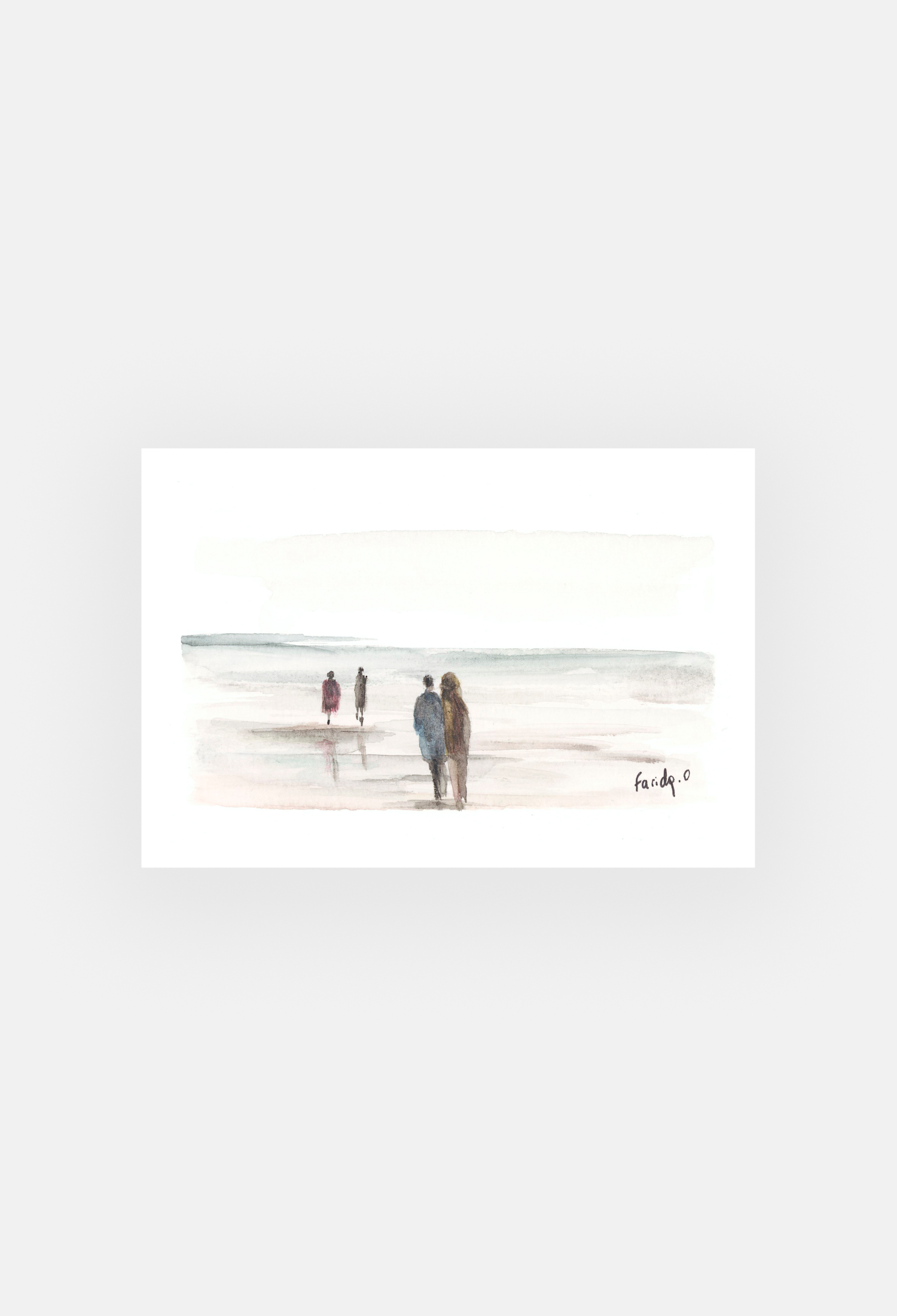 Dans ce tableau, les promeneurs déambulent le long de la plage, leurs silhouettes se détachent contre l'horizon infini de la mer. Le vent caresse doucement leurs visages, tandis que le sable s'étend à perte de vue. Chaque pas est une invitation à la contemplation, à la connexion avec la nature majestueuse qui les entoure. Les vagues viennent lécher délicatement le rivage, créant une symphonie apaisante qui accompagne leur marche paisible.