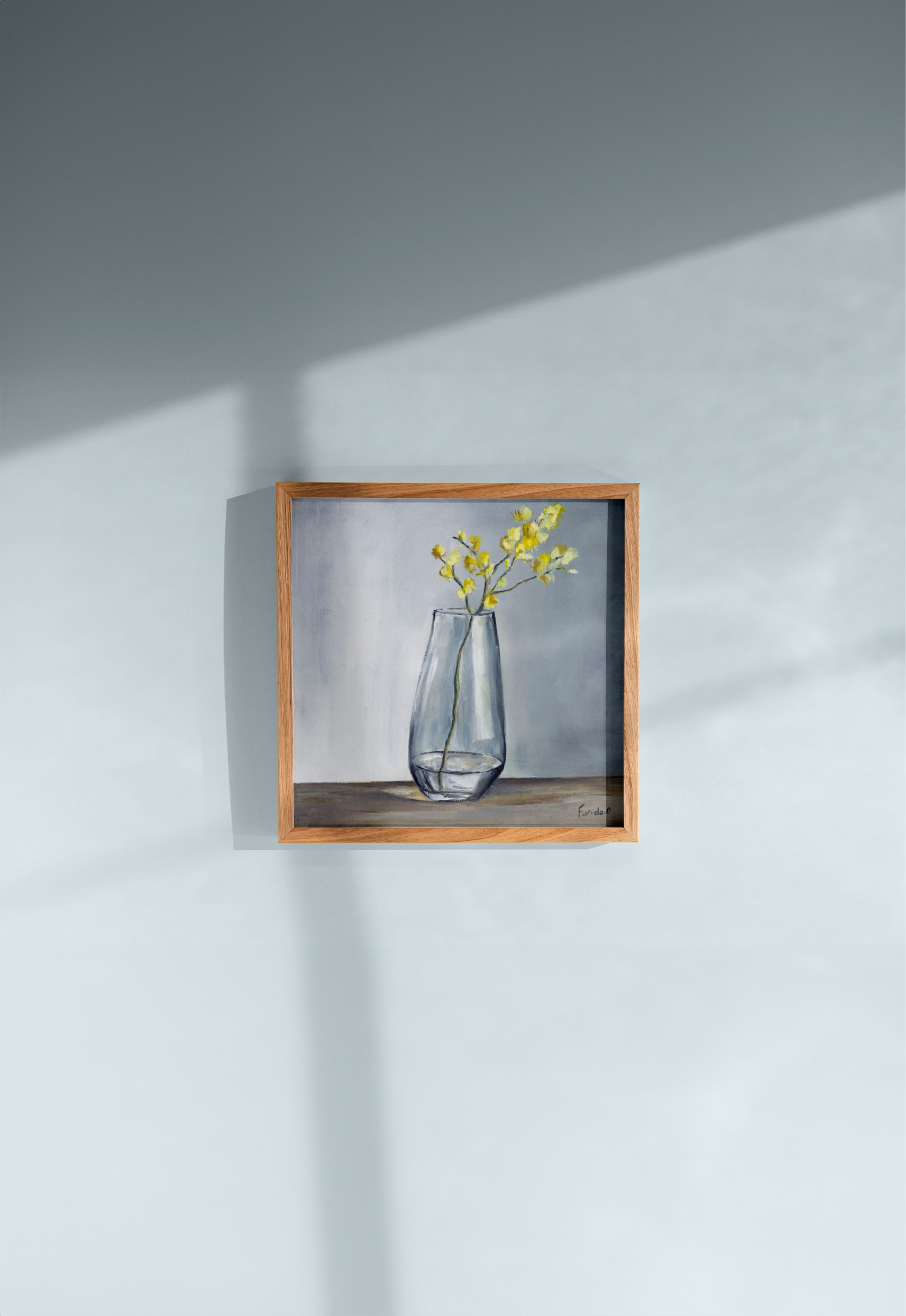 "Lueur printanière" révèle la fraîcheur et la délicatesse d'un vase transparent en verre, où des fleurs jaunes éclatantes célèbrent l'arrivée tant attendue du printemps.