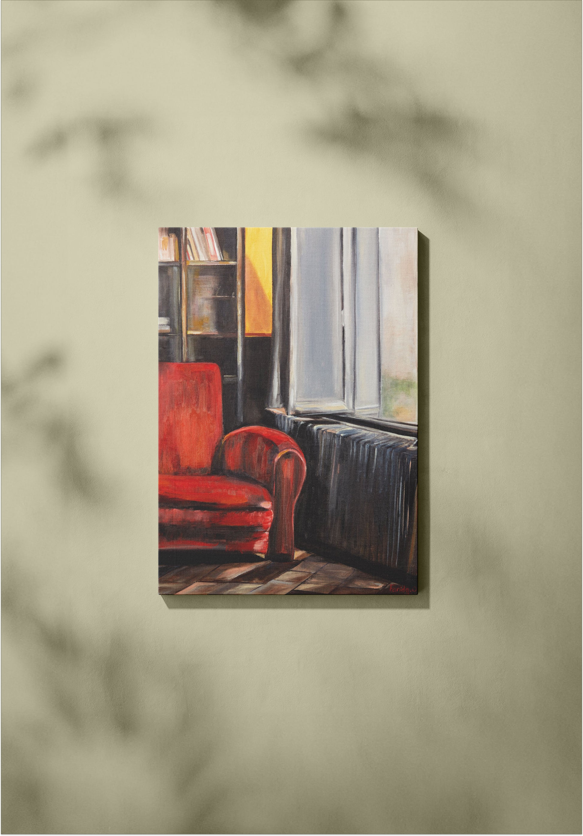 Ce tableau est bien plus qu'une simple représentation de l'intérieur d'une maison. C'est une invitation à ralentir, à se reconnecter avec soi-même et avec l'essence même de la vie. l'intérieur d'une maison devient le sanctuaire de la quiétude et du calme. Les teintes douces et apaisantes enveloppent chaque recoin de la pièce, créant une atmosphère chaleureuse et réconfortante.
