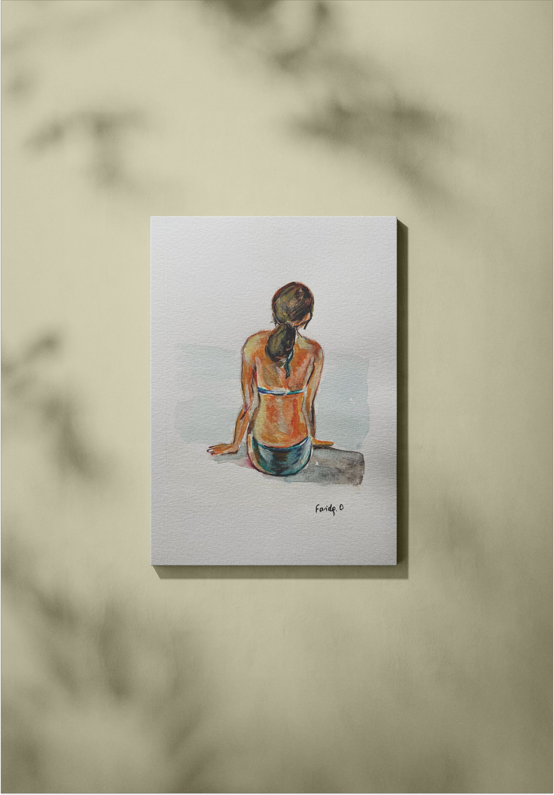 "Réverie balnéaire"capture l'instant précieux où une figure, de dos, contemple silencieusement l'étendue infinie de la mer. Ce tableau invite à plonger dans l'atmosphère apaisante d'une journée au bord de l'océan.